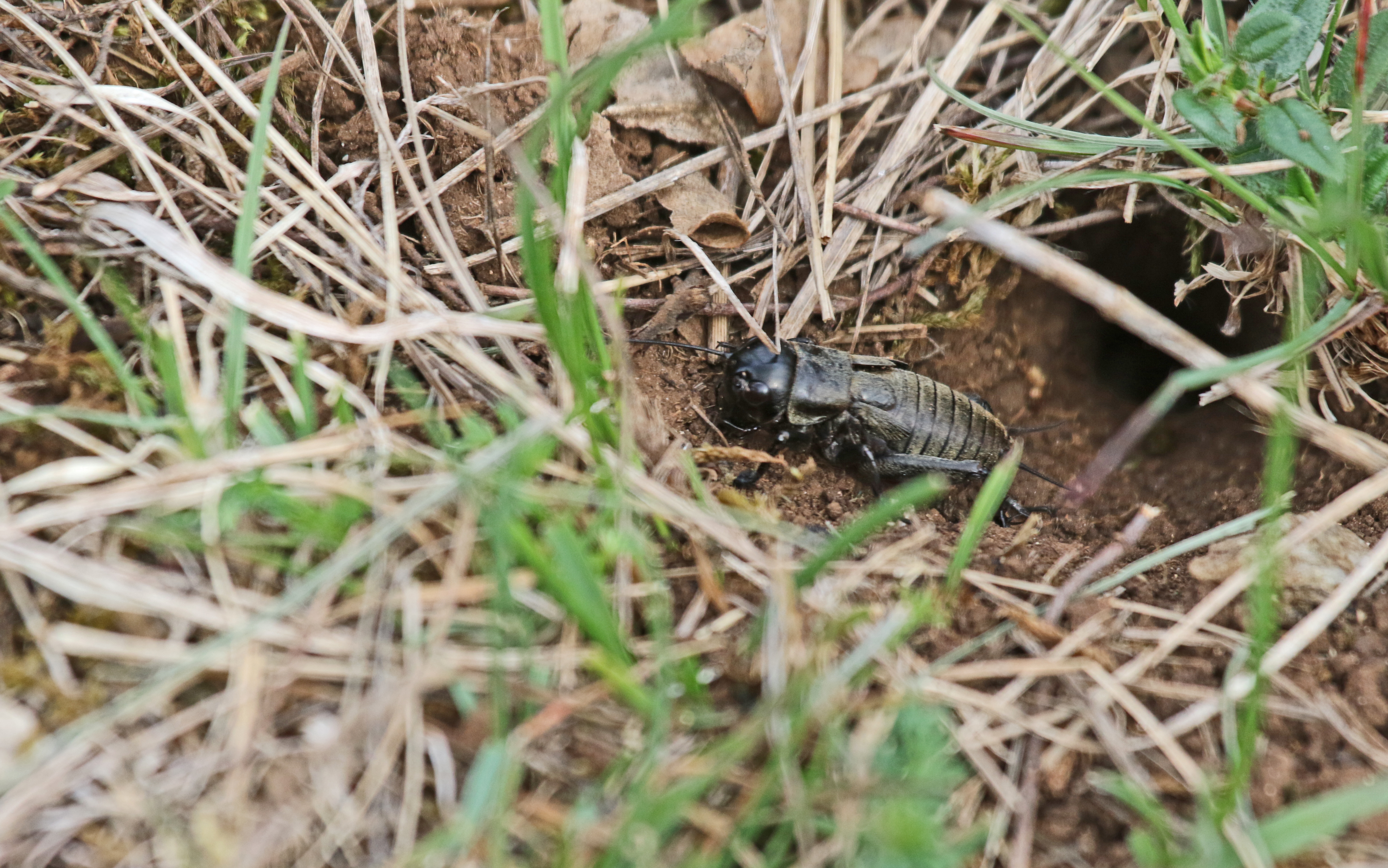 Le Grillon champêtre fréquente tous les milieux herbeux à végétation rase, y compris le gazon près des maisons à la campagne. Les adultes vivent dans un terrier d’une vingtaine de centimètres de profondeur, qu’ils creusent dans le sol.