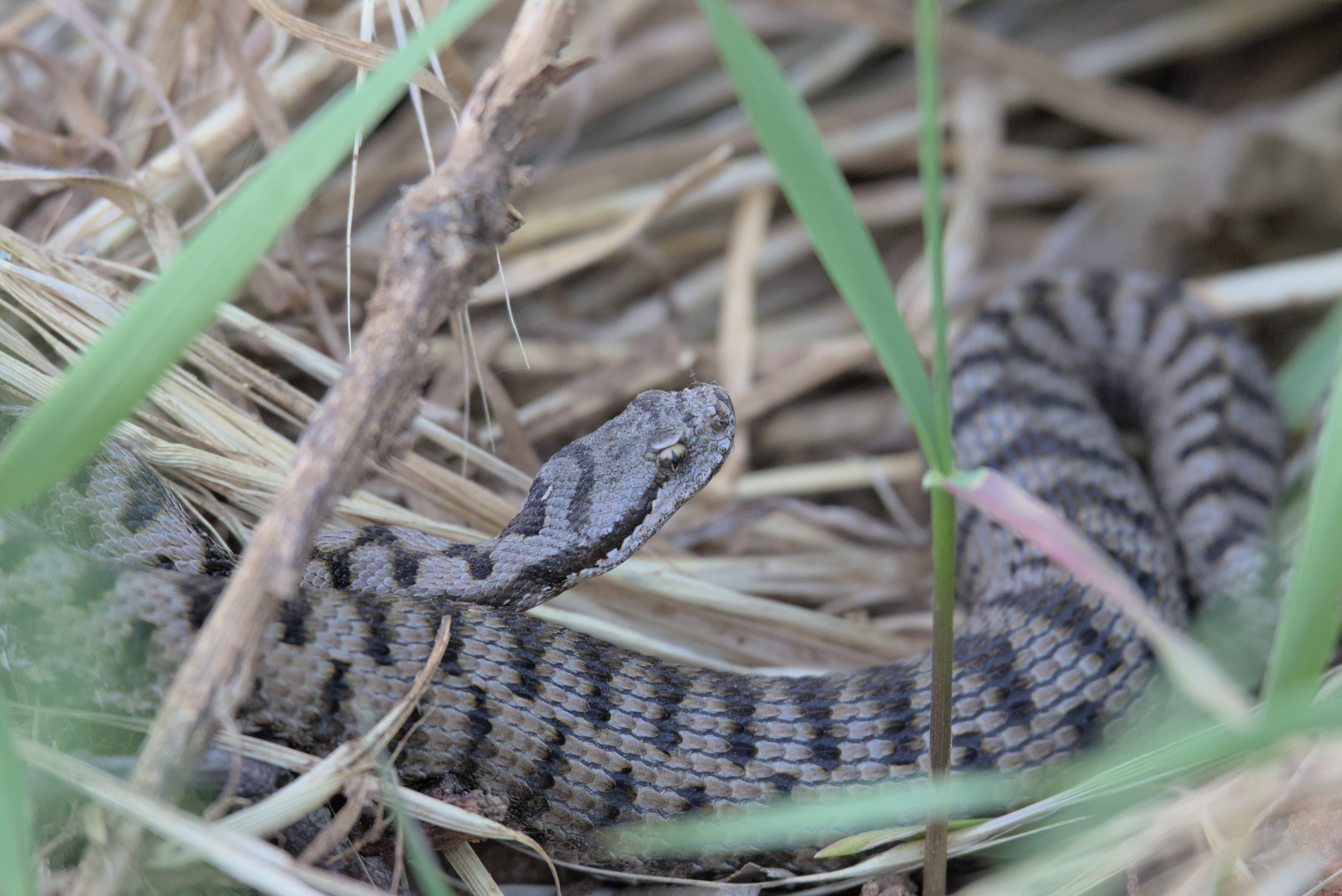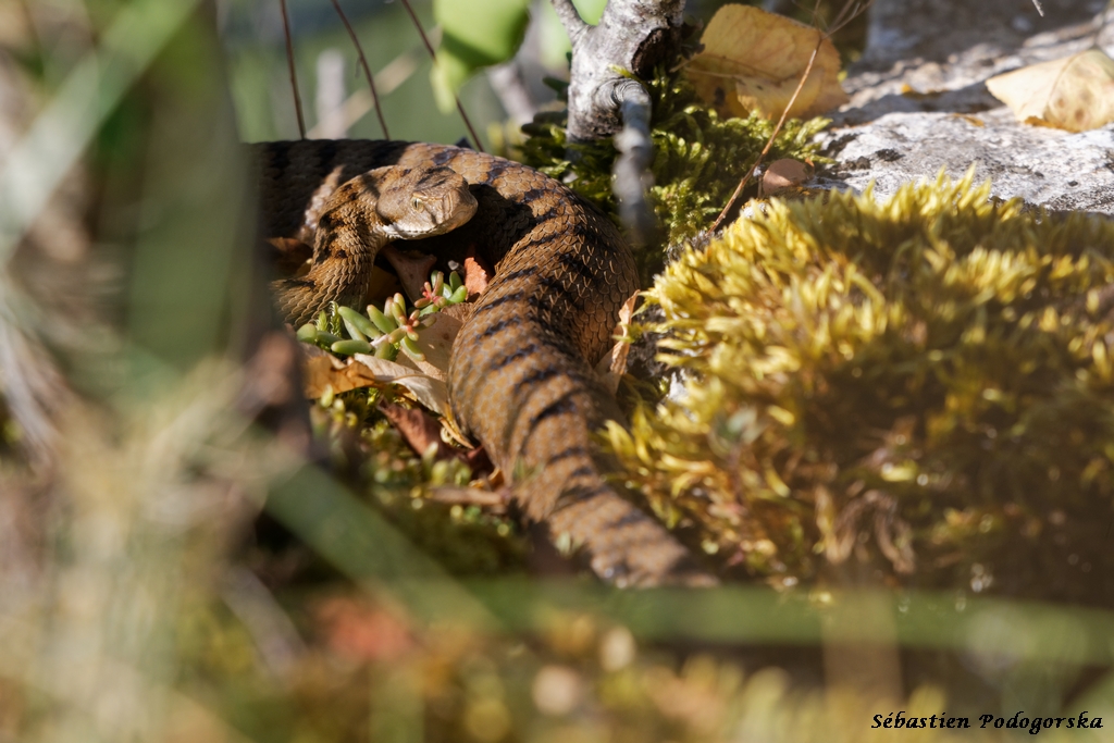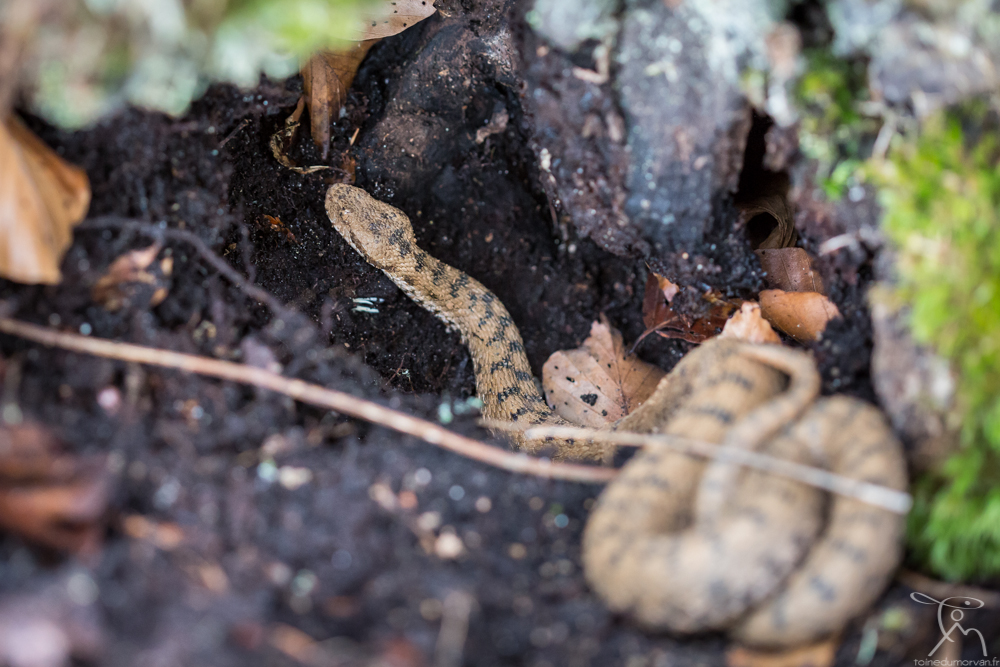 Dès le mois de mars (parfois avant), si les conditions sont clémentes, le serpent se remet en activité. La principale consiste alors à emmagasiner de l’énergie en s’exposant au soleil de longues heures durant. Courant avril, les accouplements ont lieu. La Vipère aspic est une espèce vivipare, elle ne pond pas d’œufs ! Les naissances (de 2 à 22 vipéreaux) interviennent au cours de l’été, plus particulièrement entre août et septembre.