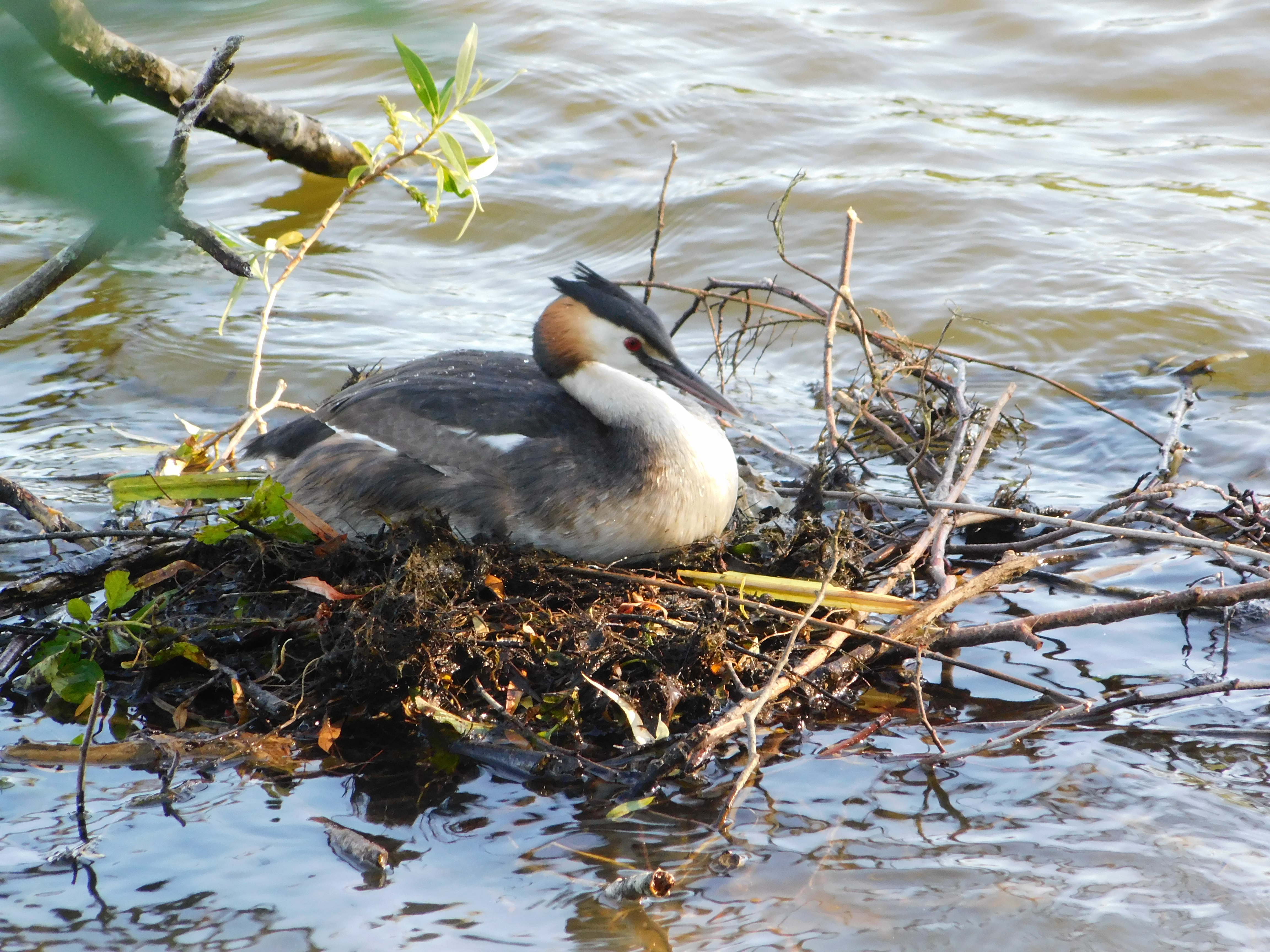 Après les grands rassemblements hivernaux (parfois plus de 200 oiseaux au lac de Panthier), les Grèbes huppés regagnent leurs sites de reproduction fin février. En mars débutent les parades, un magnifique jeu de miroir entre le mâle et la femelle, durant lequel les oiseaux plongent, tendent le cou, nagent de concert et s'offrent des plantes aquatiques. Le nid, un tas de végétaux et d'algues flottant, reçoit 3 à 4 œufs, entre avril et août. Ansi, des petits à la tête rayée peuvent être vus jusqu'au début de l'automne.